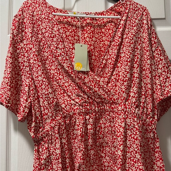 Pretty red wrap-style peplum blouse with small white floral print. The design is flattering and the print is lovely. The listing described it as a dress, but it is actually a blouse. Still a nice piece.