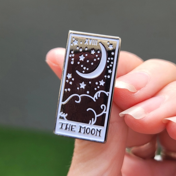 Moon Goddess Boutique Jewelry - ENAMEL LAPEL PIN | THE MOON | Mirror Background  Tarot Card Enamel Metal Pin