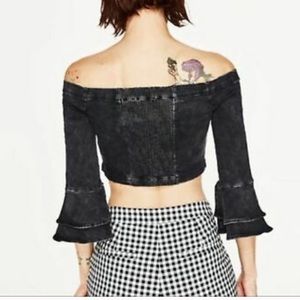 Zara Black Off Shoulder Denim Bell Sleeve Crop
