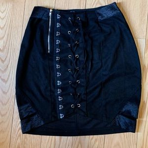MISSGUIDED Suede Lace-up MiniSkirt Black