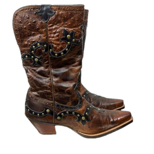 ARIAT ROGUE SKIPPY Brown Western Ostrich Cowboy Snip Toe Boot Size 9M Leather