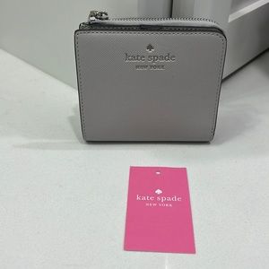 NWT KATE SPADE SM LZP BFLD K9348 SAFFIANO PVC PLATNUM GR (020) TOL SCHUYLER