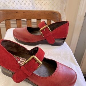 Lucky Brand Shoes Red Leather and Suede with Gold Buckle Mary Jane/ Clog Style