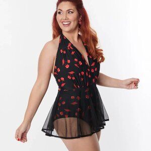 Emily The Strange x Unique Vintage Cherry Cats Skirted Wendy Swimsuit