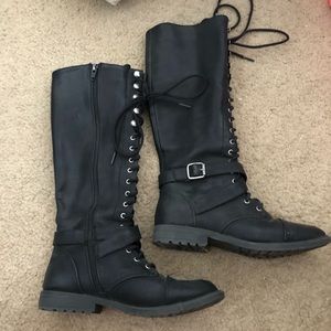 Black knee high lace up boots