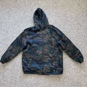 Dickies Camo Jacket size large hooded fill zip pockets Sherpa interior