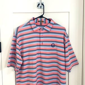 Blue and pink striped Peter Millar golf polo