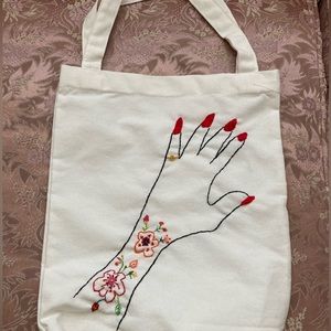 NEW hand sewn flowers canvas bag leather straps