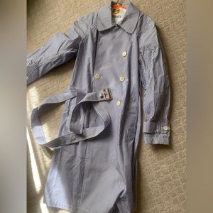 J. Crew Blue and White Striped Trench Coat Dress
