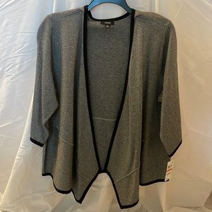 NWT Alfani L Jacket Birds Eye Jacquard Open Front Contrast Trim 3/4 Sleeve Drape