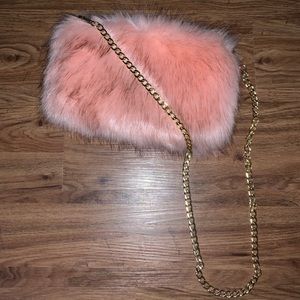 Light pink furry cross body purse
