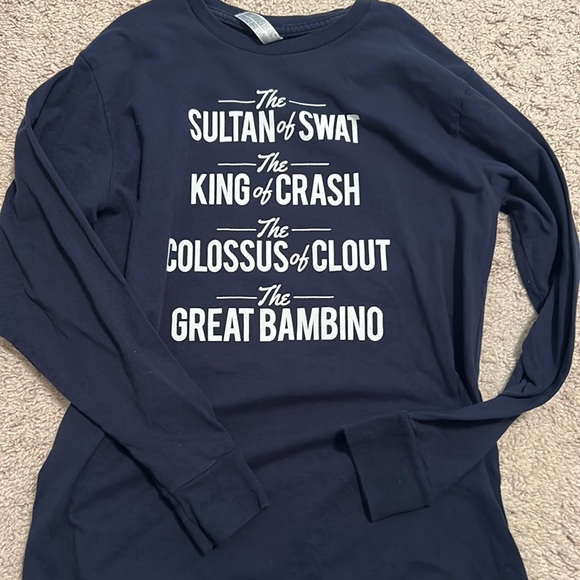 The blue jeans have a black stain on the right back pockets. In the picture the shirt looked more navy blue then royal blue