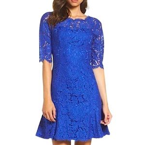 BEBE blue razorback dress