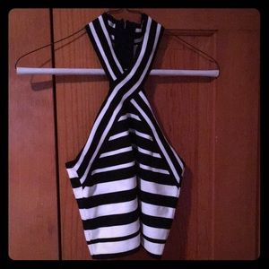 Forever 21 Black & White Halter Crop Top