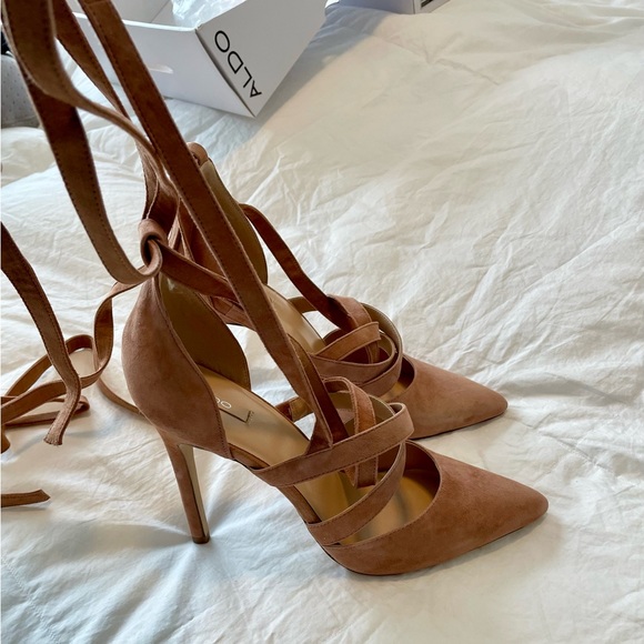 Heels just as described! Brand new never worn! Complete with shoe box! Very happy with this purchase! Thank you!❤️🌹😀