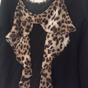 Buckle Cheetah Print Bow, Light Weight Sweater