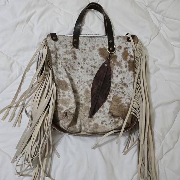 Gorgeous hair-on-hide tote with fringe! I wish I could give 10 stars! Fast shipping, safe packaging, and thoughtful extras with a sweet note all combined to make this a truly standout Poshmark experience. 🥰🥰 Thank you!!!