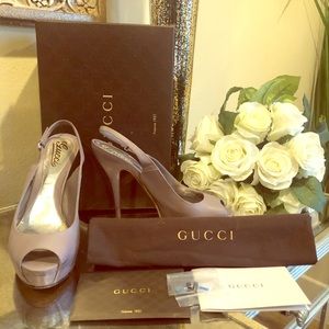 Gucci Platform Peep toe Sling Back in Taupe 38.5
