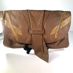 VINTAGE 1980’s LEATHER & SNAKE SKIN LG TAN CLUTCH PURSE Granny Core Y2K Retro