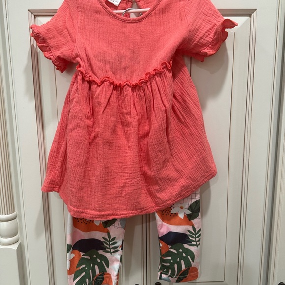 Love the long sleeve top and colorful leggings! My granddaughter will appreciate this very cute outfit! Good price!