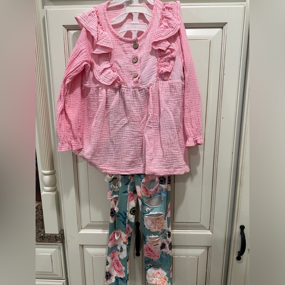 Love this cute outfit! Very colorful eyelet top along with cute leggings! Good price too!