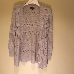 Gray textured cardigan with elbow patches