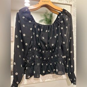 ASTR The Label Floral Puff Shoulder Long Sleeve Cut Out Back Dress Small