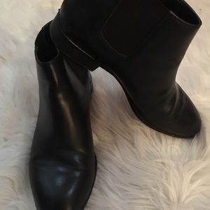 Cute black leather pull on black ankle boots