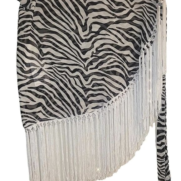 Promptly shipped. Arrived securely packaged. RARE and absolutely BEAUTIFUL zebra design! GORGEOUS fabric and silky tassels. New and excellent condition. PERFECT match for my zebra bikini top! UNBEATABLE value! I love, love, love it! Also, thank you for the lovely gift and wonderful handwritten note. It has been a pleasure buying from you. Thank you so much .