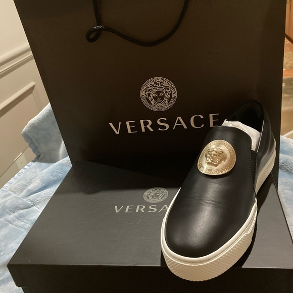 Words cant describe my happiness of this purchase.. been a long wait since March.. but I finally have my beautiful versace Medusa slip ons... Persistence pays off💯🤗❤️❤️