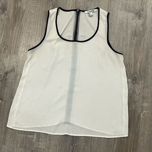 Forever 21 Cream Sheer Tank Top with Black Zipper, Size L