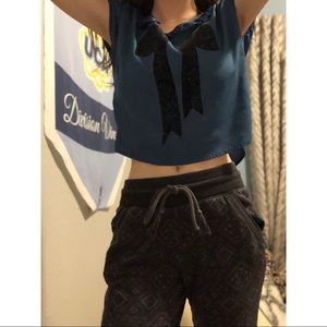 Blue and black bow crop top