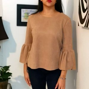 DO+BE Suede bell sleeve top, Tan Color Sz M