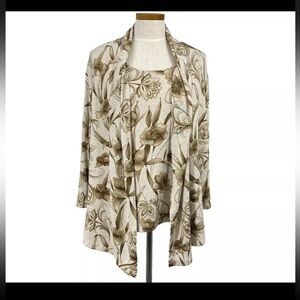 Appleseed's Womens XL Green White Striped Flamingo 3/4 Sleeve Knit Top RN 76915