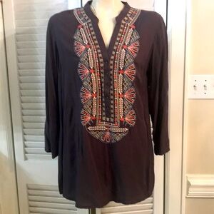 Roaman's Deep Navy Embroidered Blouse