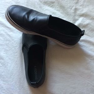 Black Pleather Slip On Flats by Divided