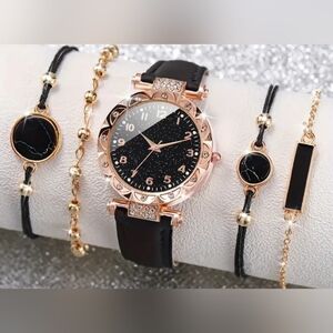 5 piece set Women's starry rhinestone quartz watch analog PU leather wrist watch