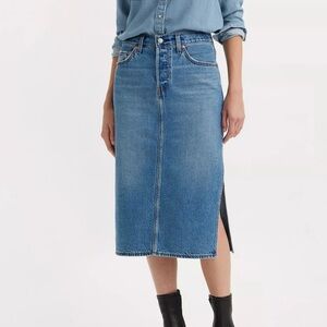Levi’s Iconic Button Fly Denim Maxi Long Skirt Western Boho Side Slit Size 28
