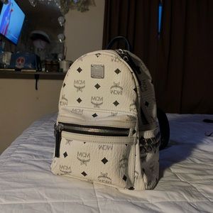 White Studded MCM Backpack (One Size)