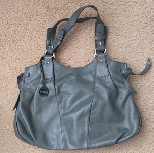 Furla shoulder bag genuine leather in dark green gray olive