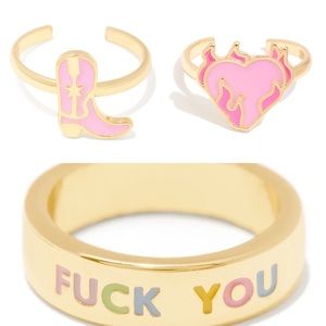 Set of 3 trendy rings cowboy cowgirl boot, flame heart, f u colorful ring