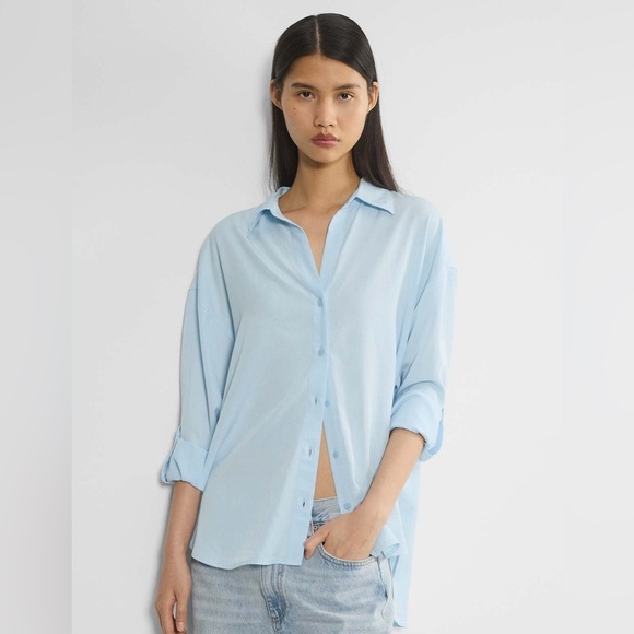 It should be a size M ( label suggests it too) but it is much bigger. Not sure why . The shirts material is fantastic, soft and the colour is gorgeous.