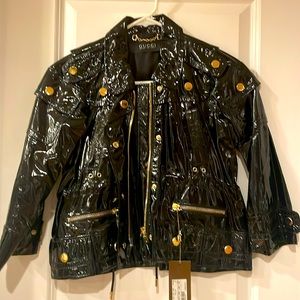 Gucci woman’s size 42 patten leather jacket with gold buttons and zipped