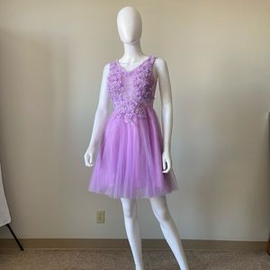 Lavender Cupcake Formal Dress w Floral Appliqués