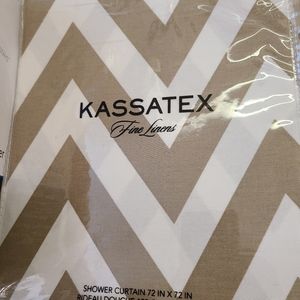 Kassatex Fine Linens: taupe & white chevron shower curtain, 72 x 72 NIP
