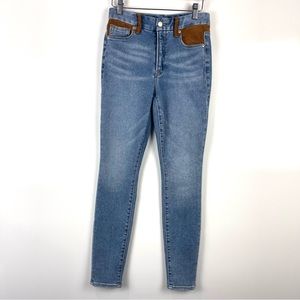 Good American Icon Mixed Media Denim Suede Straight Jeans Blue Brown Size 2/26