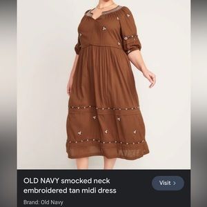 OLD NAVY smocked neck embroidered tan midi dress