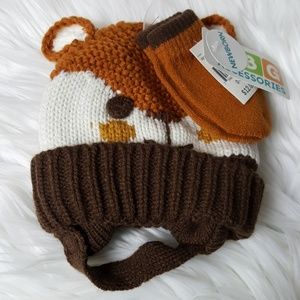 Fox Knit Cap and Mittens Set for Newborn Baby NWT