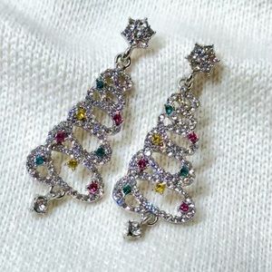 🌼 Holiday Multi Color Zircon Christmas Tree Earrings Silver Tone