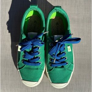 Cariuma green canvas sneakers in a size 6. Added blue laces. Great condition!
